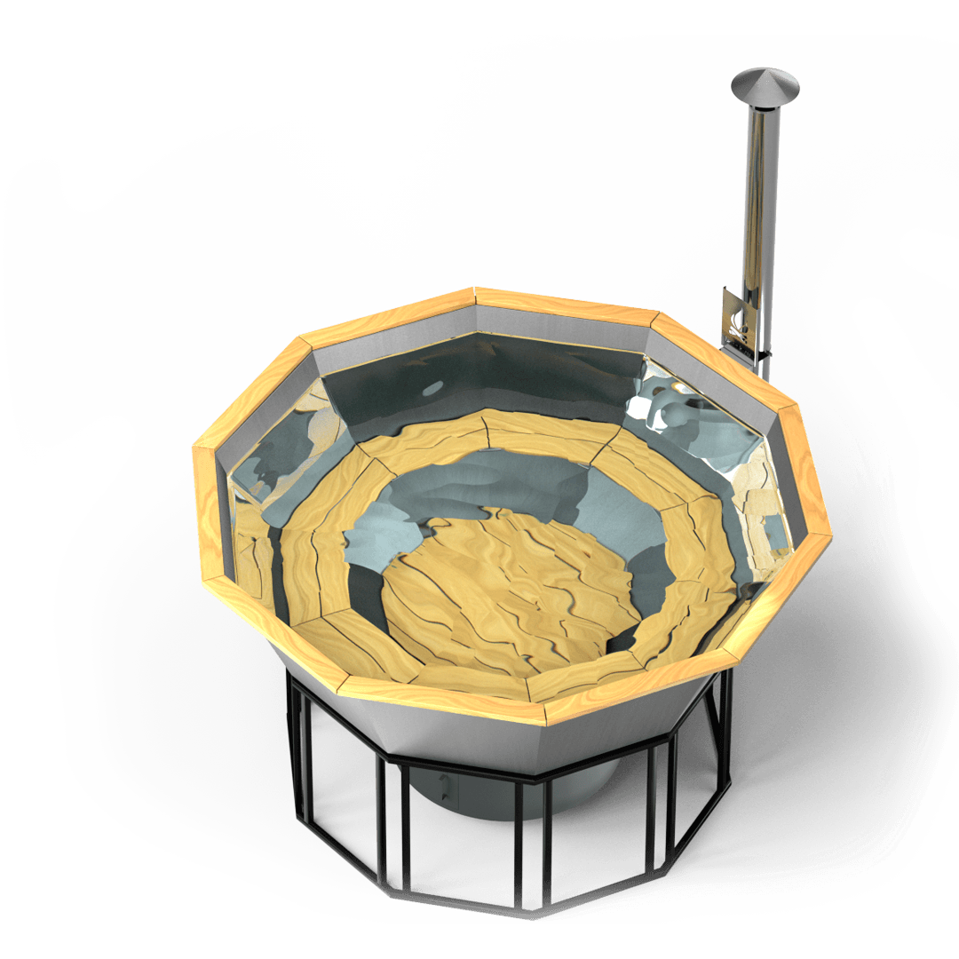 Банный чан имеет внутренний размер 2,3 метра. Самый большой чан из нашей линейки, предназначен в основном для коммерческого использования, ведь в нем одновременно может находиться 8-10 человек. Чан имеет 10 плоских граней и выполнен из нержавеющей стали. Особенностью конструкции является универсальность и взаимозаменяемость комплектующих. Это позволяет монтировать и доставлять чаны намного легче и дешевле чем у конкурентов.